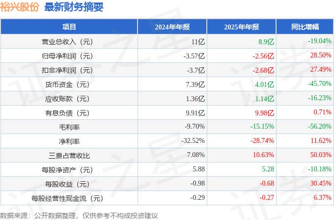2026-04-19英雄联盟投注,英雄联盟,英雄联盟下注,LOL投注官网,英雄联盟赛事投注,英雄联盟下注,英雄联盟电竞,英雄联盟投注网站,LOL,英雄联盟赛事,LOL投注,LOL赛事下注,LOL投注网站,lol下注平台据证券之星公开数据整理,近期裕兴股份(300305)发布2025年年报。截至本报告期末,公司营业总收入8.9亿元,同比下降19.04%,归母净利润-2.56亿元,同比上升28.5%。按单季度数据看,第四季度营业总收入1.78亿元,同比下降28.3%,第四季度归母净利润-6637.7万元,同比上升65.71%。本报告期裕兴股份三费占比上升明显,财务费用、销售费用和管理费用总和占总营收同比增幅达50.03%。